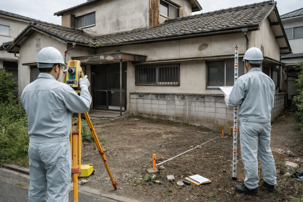 土地を売却するためには、確定測量(土地の境界を正確に測り、法的に明確にする作業)が必要になります。しかし、隣の土地も長年放置された空き家であり、誰が所有しているか分からない状態でした。確定測量には隣地所有者の立ち会いが必要なため、このままでは売却の手続きが進められないという問題がありました。