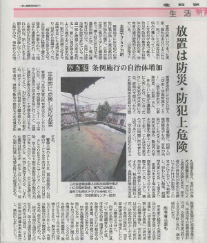 NPO法人 空家・空地管理センターは、テレビや新聞、雑誌などを活用し、全国で急増する空き家問題について普及活動を行っています。