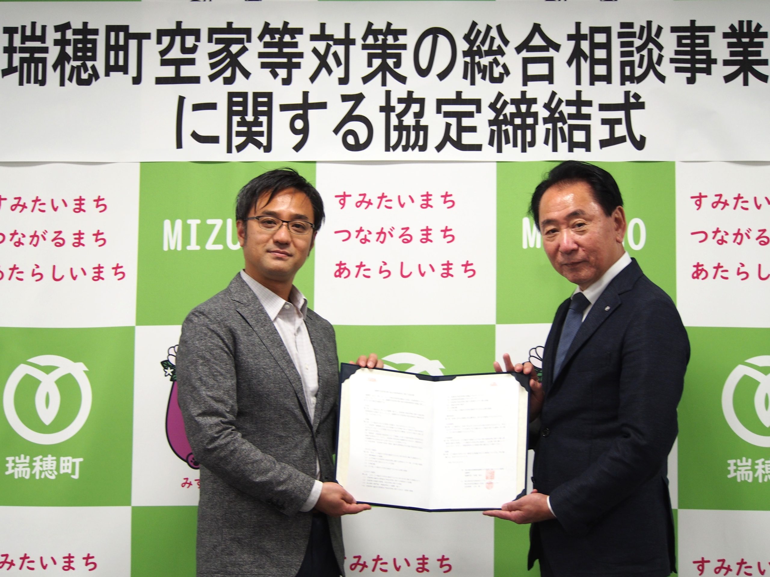 (左:空家・空地管理センター代表理事 上田 真一、右:瑞穂町長 杉浦 裕之氏)